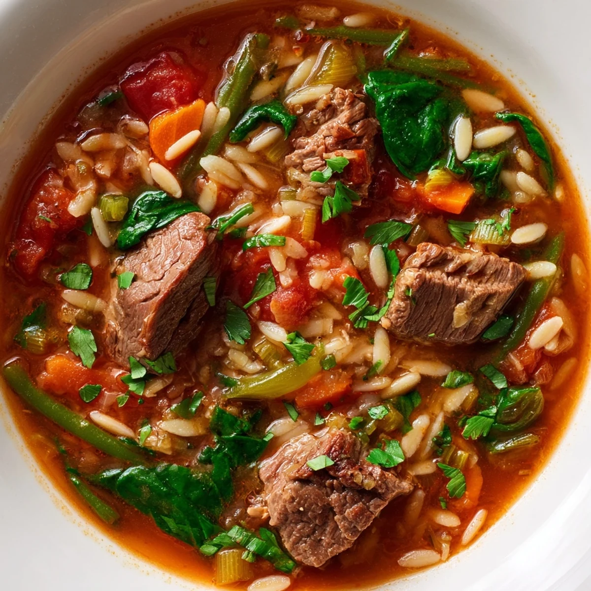 This satisfying soup combines succulent beef stew meat with petite orzo pasta and a colorful medley of garden vegetables. The savory broth simmers with aromatic herbs, creating depth and warmth. Each spoonful delivers tender beef, perfectly cooked pasta, and vibrant veggies in a nourishing bowl that's ideal for chilly evenings or when you need something filling and homemade.