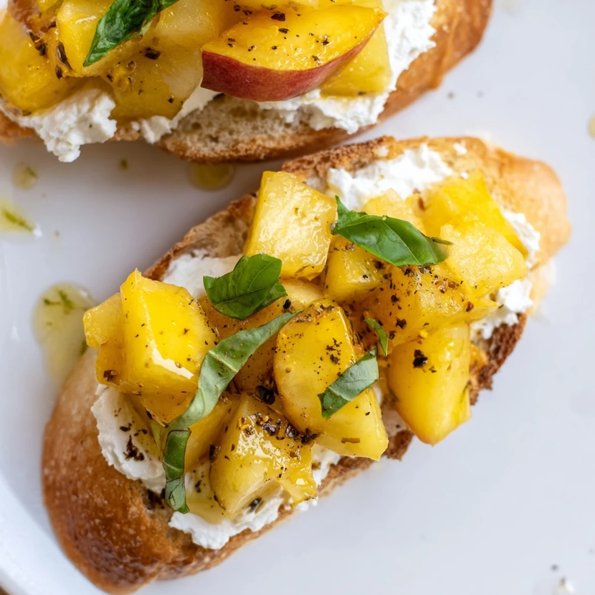 Absolutely. Brush baguette slices with olive oil and grill over medium-high heat for 1-2 minutes per side until golden with distinct grill marks. This adds a subtle smoky flavor that complements the sweet peaches.